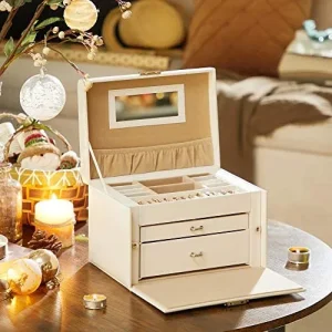 Songmics Schmuckkästchen Schmuckkoffer Abschliessbar Spiegel 4 Hacken