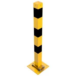 Der neigbare Absperrpfosten aus Stahl wird mit 4 Gummigelenken auf einer Bodenplatte befestigt und hilft dabei Beschädigungen an Fahrzeugen zu vermeiden. Die Bodenplatte 360 x 360 mm mit 4 Bohrungen wird einfach auf dem Boden aufgedübelt. Dazu benötigen Sie noch den Befestigungsschraubensatz Typ 2.