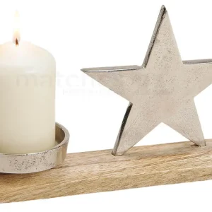 matches21 Adventskranz Adventsgesteck Mangoholz Kerzenhalter Teelicht Teelichthalter Holz Metall silber 1 Stk Ø 20×5 cm