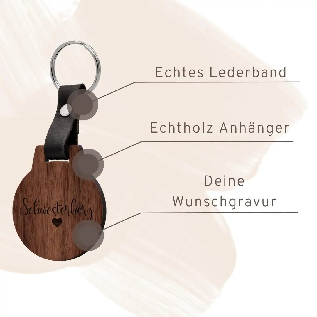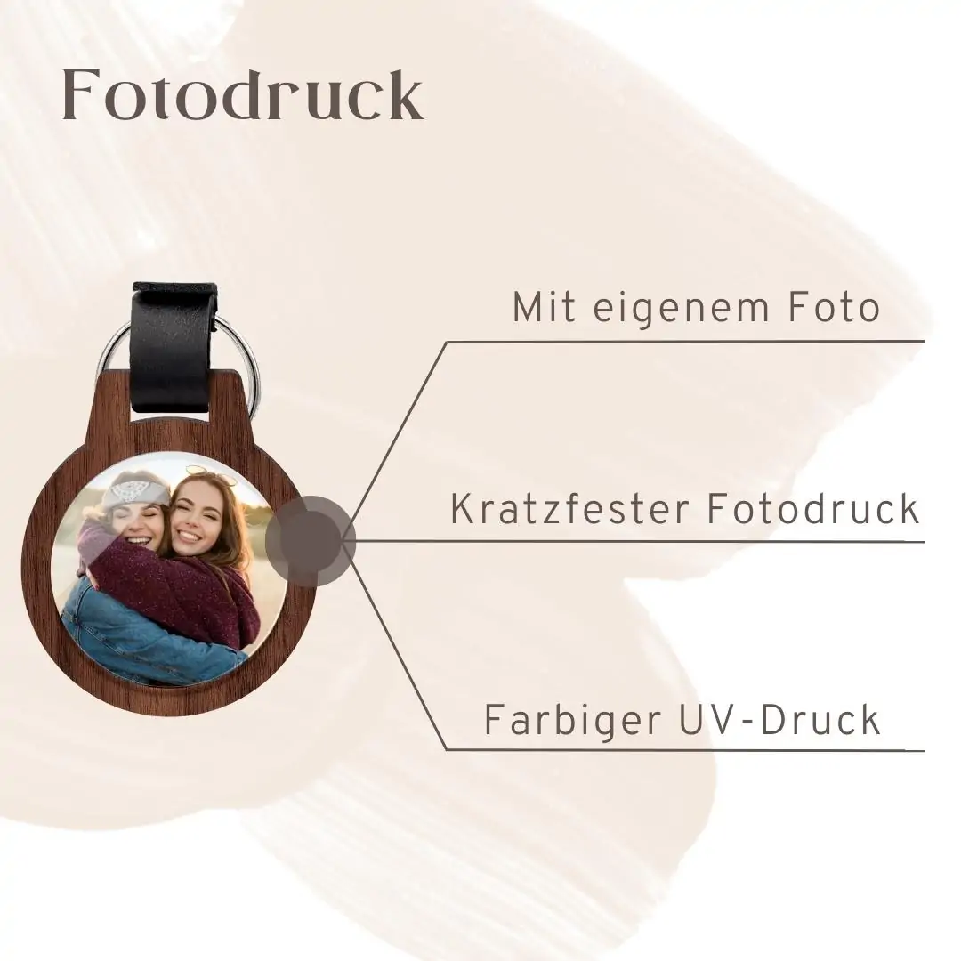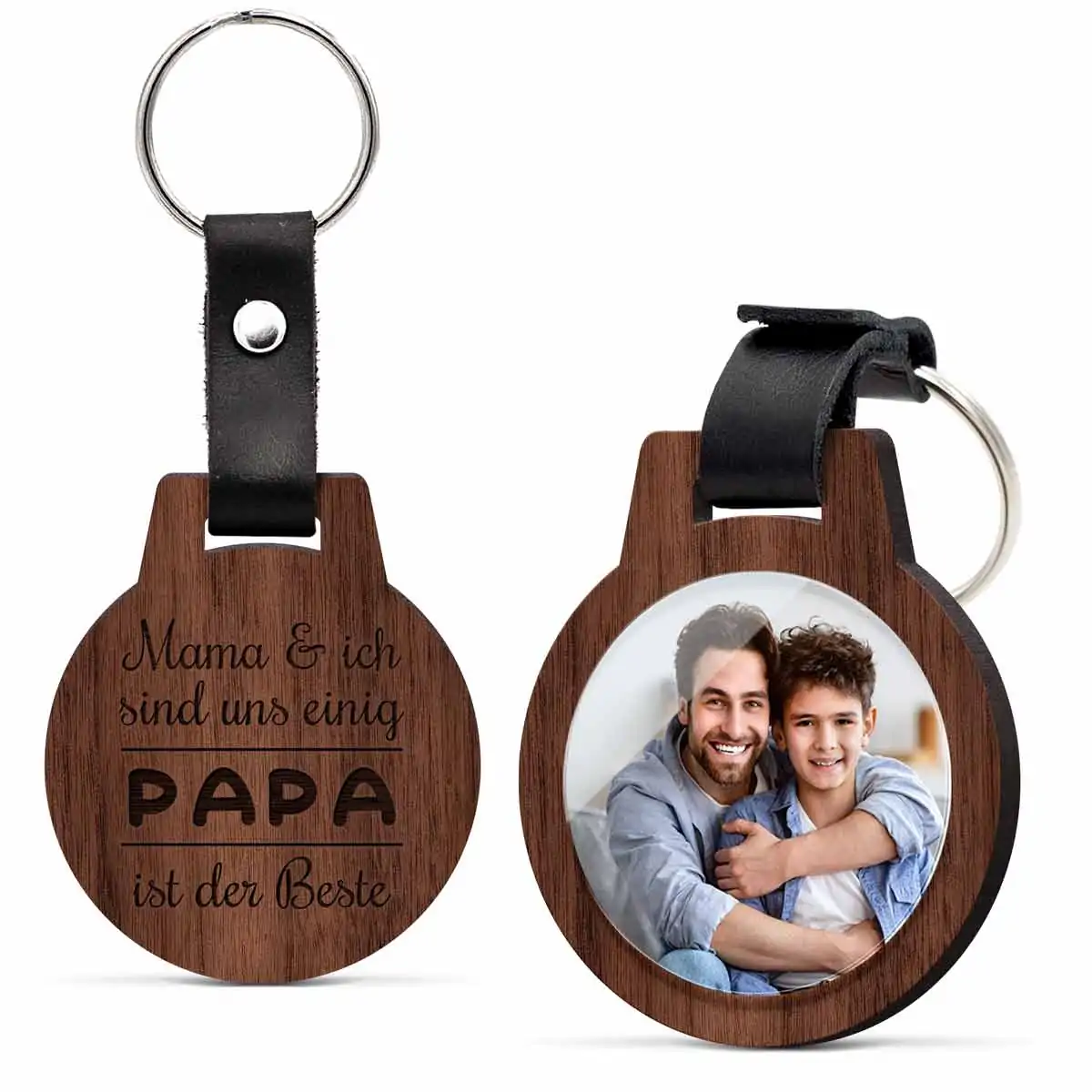 Gestalte einen individuellen Schlüsselanhänger mit Foto und Gravur aus echtem Holz – egal, ob für Dich oder Deinen Lieblingsmenschen. Jeder von uns hat Menschen in seinem Leben, welche einem die Welt bedeuten. Wir sind unendlich dankbar für die gemeinsamen Momente und Augenblicke, die wir mit dieser Person sammeln durften. Trotzdem fällt es uns manchmal schwer die Zuneigung und Wertschätzung, die wir diesem Lieblingsmenschen entgegenbringen, in Wort zu fassen. Unsere individuell gravierten Schlüsselanhänger aus Echtholz mit einem persönlichen Foto-Druck geben Dir eine wundervolle Möglichkeit, unvergleichliche Freude zu verschenken. Egal, ob für Deinen Partner, den besten Freund oder ein unersetzliches Familienmitglied – dieser personalisierte Eyecatcher schmückt jeden Schlüsselbund und begleitet Deinen Lieblingsmenschen bei jedem Schritt.