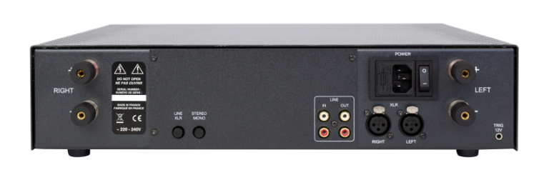 6 MOS-FET-Transistoren pro Kanal • 2 × 150 W rms / 8 Ω • Symmetrischer XLR-Eingang