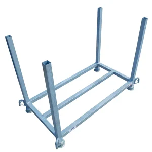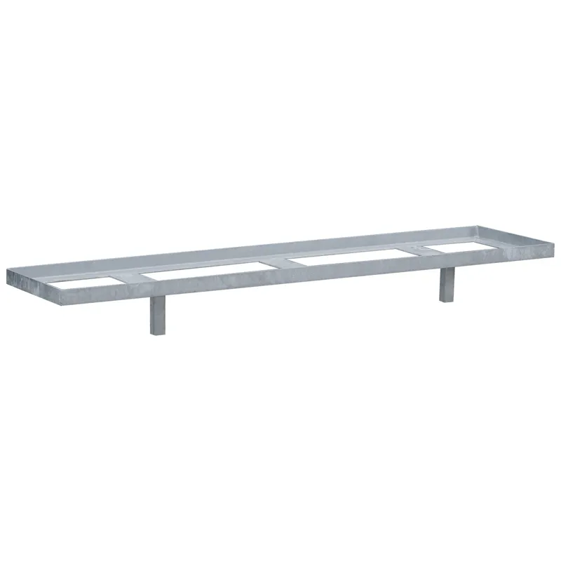 Dieses Aufsatzteil von Schake lässt sich auf die Transport- und Lagerpalette mit 2 m Länge (Art.-Nr. 32000) montieren und nimmt bis zu 16 K1-Fußplatten auf.