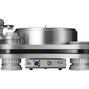 Allen Rotation-Plattenspielermodellen gemeinsam sind die Rahmen, die aus schwerem Verbundmaterial (in unterschiedlichen Stärken) bestehen. Diese Rahmen sind aus zementpulverisiertem HDF gefertigt, mit handgeschliffenen eloxierten Aluminiumteilen verklebt und dadurch zusätzlich versteift. Durch die Verwendung dieser unterschiedlichen Materialien entsteht eine vibrationsdämpfende Sandwichkonstruktion, die eine nahezu völlig resonanzfreie, solide Basis für den mattierten und innenbeleuchteten Acryl-Plattenspieler bietet. Die präzisen Upside-Down-Lager sind weitere Präzisionsteile, die maßgeblich für die bemerkenswerte Laufruhe der R 30.3 verantwortlich sind. Eine intelligente, vollelektronische Forward-Servosteuerung ermöglicht eine präzise und konstante Drehung des Plattentellers.