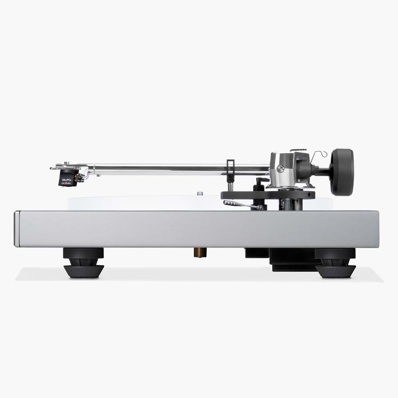 Zeitgleich mit dem R 5.3 erschien das R 2.3, das nun als direkte Ideenquelle für die Entwicklung des neuen AVM R 30.3 dient. Basierend auf Designmerkmalen des R 2.3 übernimmt der R 30.3 einige klare Ideen von diesem Modell. Das Highlight des R 30.3 ist der identisch übernommene 9“-Tonarm mit seinen raffinierten Detaillösungen. Dieser Tonarm ist ein komplettes AVM-Design. Es unterstützt mühelos alle bekannten Kartuschensysteme auf dem Weltmarkt. Es ist auch möglich, die hochwertigen Cadenza-Tonabnehmer von AVM zu montieren, wodurch das volle Potenzial des Tonarms zur Geltung kommt.