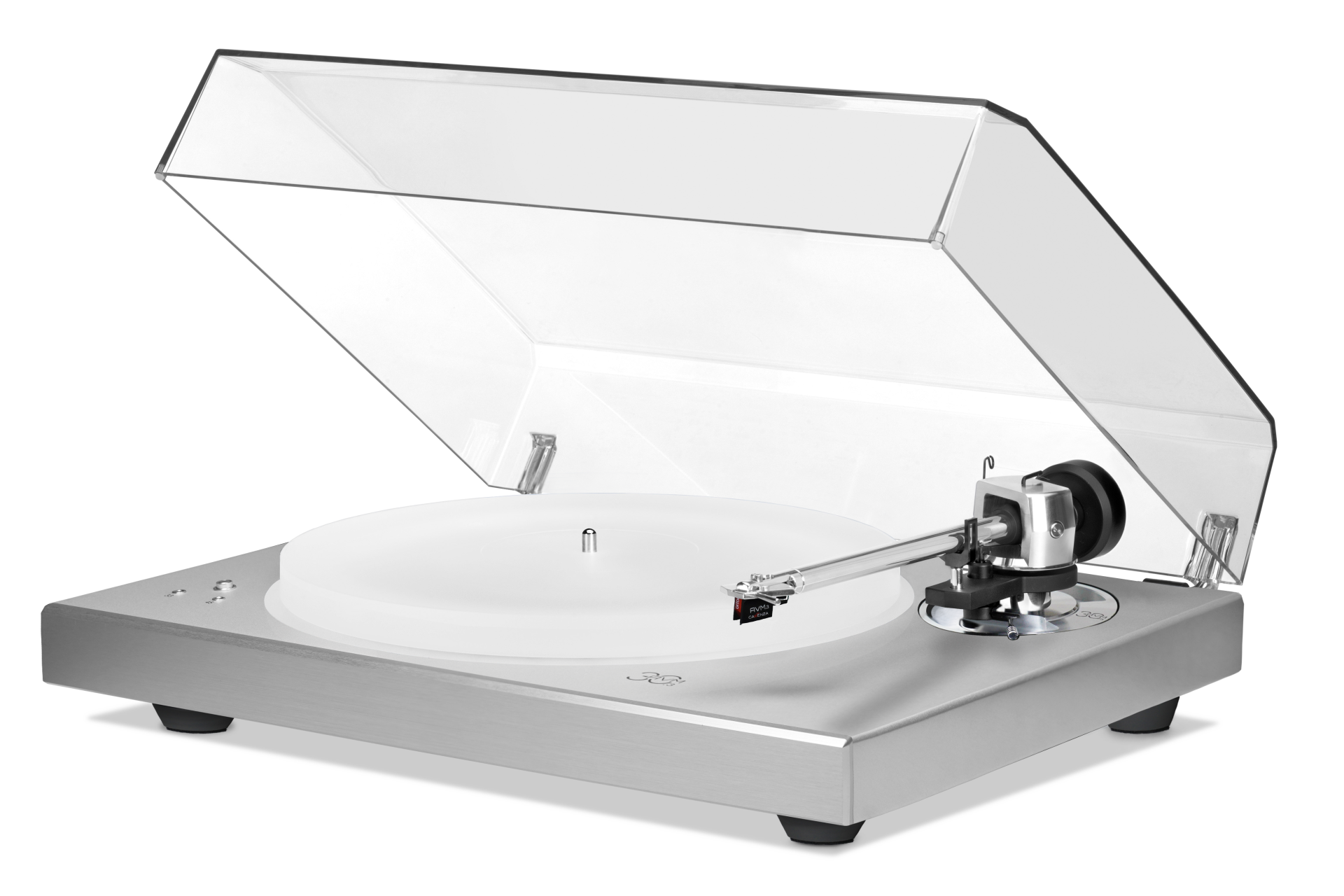 Das Top Modell, der ROTATION R 5.3 setzt in puncto Laufwerk zahlreiche technische und innovative Akzente. Als ein Beispiel ist hier der aufwändige Elipso-Centric belt-drive zu nennen. Er erzielt eine komplett entlastete Plattentellerachse mit Kippmoment von 0,0. Nicht nur das federnd aufgestellte Laufwerk, sondern insbesondere der von AVM entwickelte 10‘‘ Tonarm aus auf Hochglanz polierten Aluminium-Bestandteilen sind klangliche, technologische und ästhetische Leckerbissen des R 5.3.