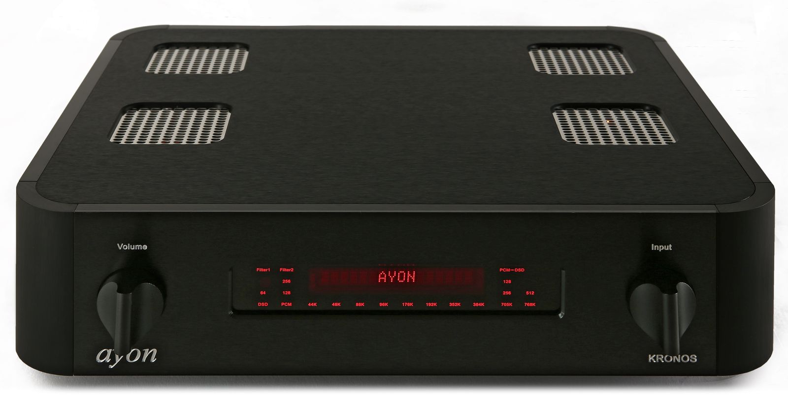Der KRONOS in der Signature Version bietet zusätzlich einen PCM-DSD Wandler für alle PCM-Signale. Dazu verwendet Ayon in dieser Version hochwertige Koppelkondensatoren um u.a. DC-Anteile von der Wechselspannung zu trennen und Störungen zu kompensieren.
