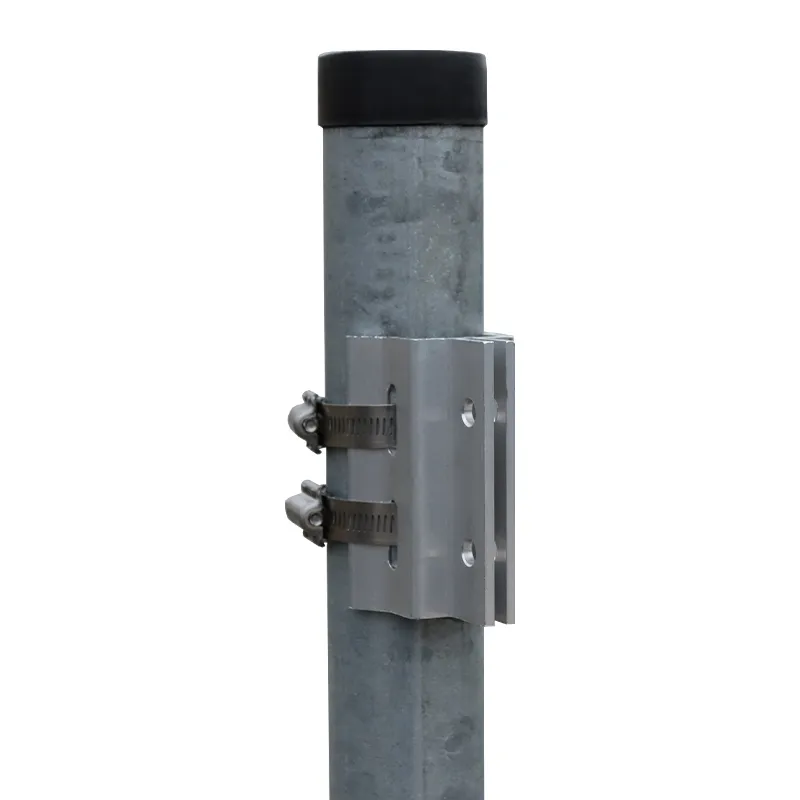 Mit der Bandschelle Fuvial bringen Sie Verkehrszeichen, Haltestellen- und Straßennamenschildern oder Werbetafeln seitlich an Masten verschiedenster Durchmesser an.
