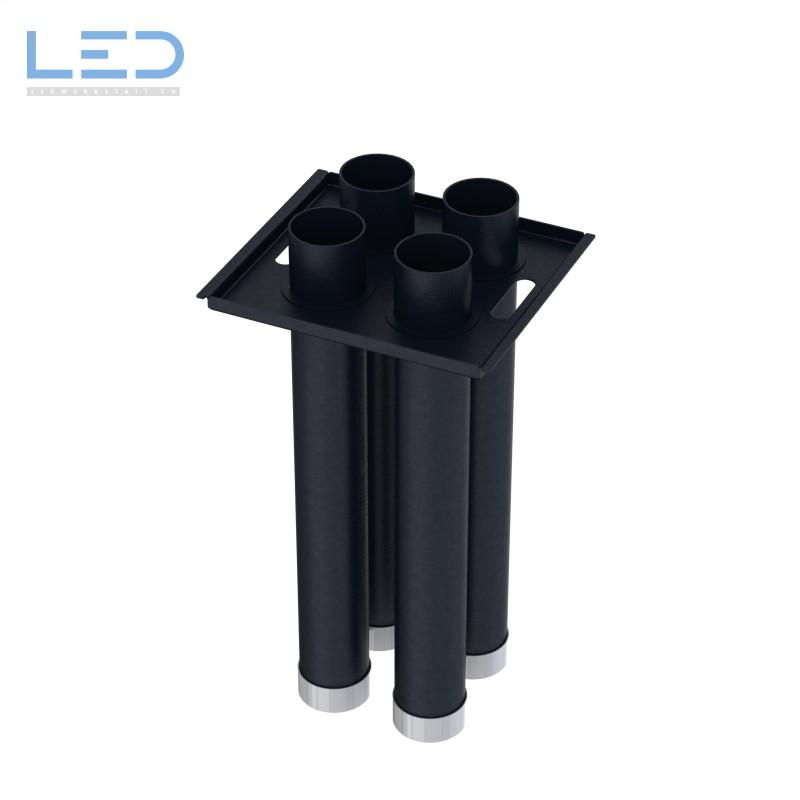 Um das Gewicht beim Handling zu minimieren sind die Rohre aus Aluminium mit schwarzer Pulverbeschichtung. Schwarz verwenden wir, damit man den Abfall nicht sieht.