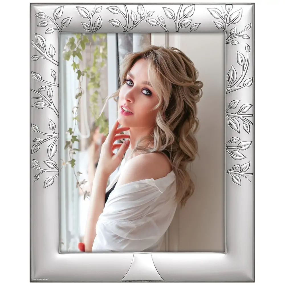matches21 Bilderrahmen Blatt Struktur versilbert Rahmen Wechselrahmen glänzend matt Holz & Metall silber 1 Stk 2 Formate