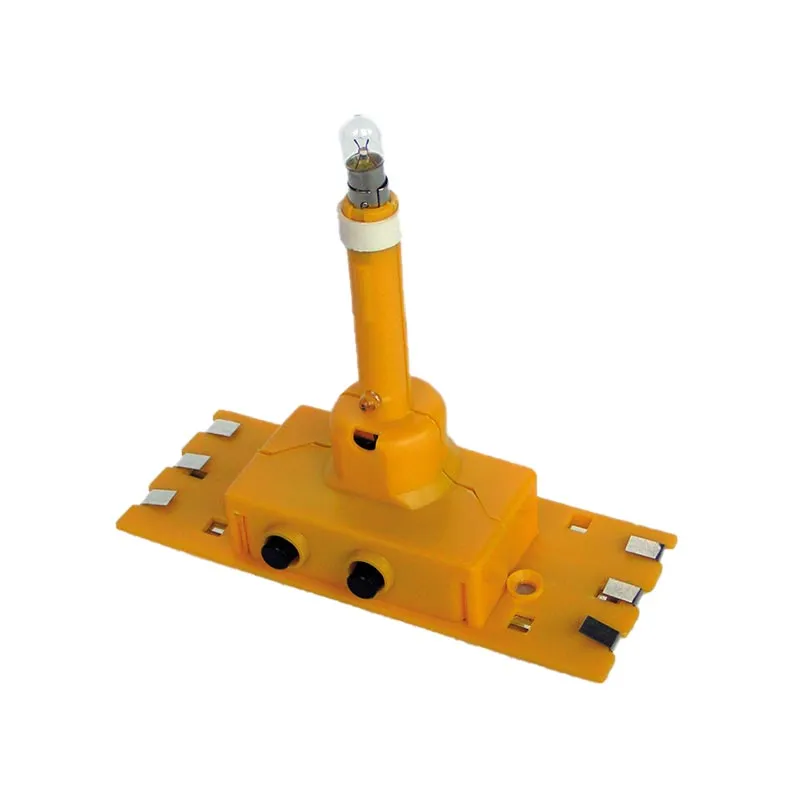 Auf dem 3-Schienen-Trägereinsatz befindet sich neben dem Sockel für die Glühbirne auch Kontakte für die Batterien. Durch den Blinkgeber wird die Blinkfunktion gesteuert. Eine LED-Leuchte dient zur Funktionsanzeige.