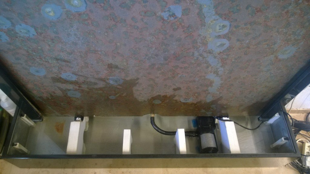 Die Wasserwand steht in der Wanne auf speziell dafür konstruierten Hartschaum Stehern und wird mittels Schrauben an der Wand verankert.