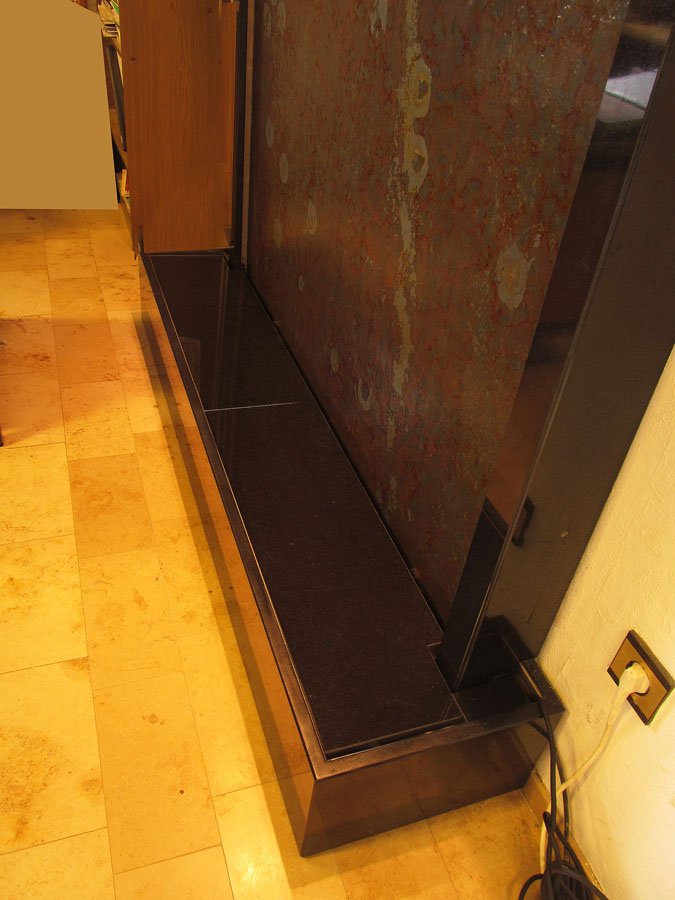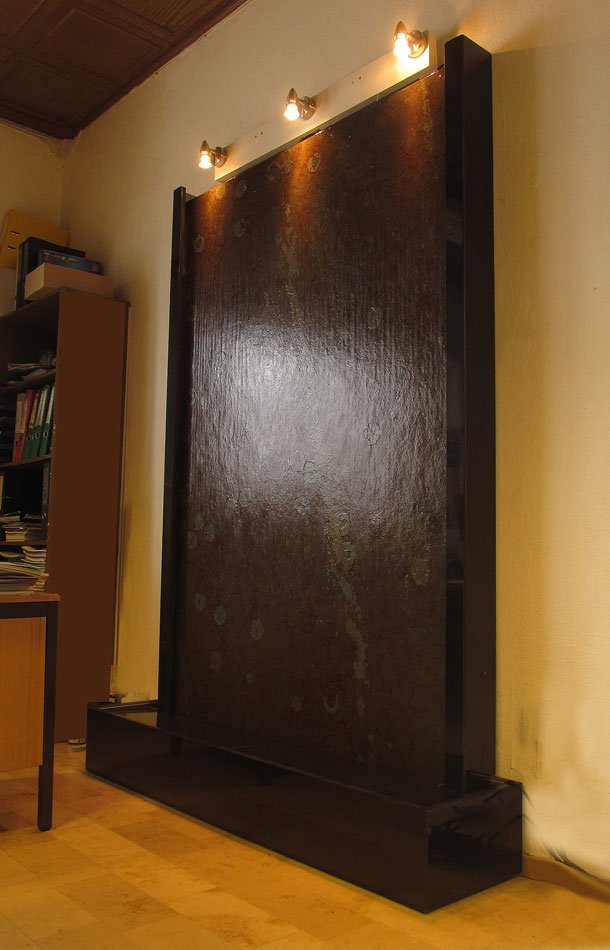 Es handelt sich beim der Wasserwand “Rusty Papagaios” um eine Wasserwand aus brasilianischem Buntschiefer. Mit dieser individuellen Lösung erhalten Sie einen effektiven Luftbefeuchter und ein optisch beeidruckendes Wasserspiel für Ihr Heim. Das Wasser fließt sanft über die natürlich strukturierte Schiefer-Oberfläche und sorgt für eine beruhigende harmonsche Atmosphäre.