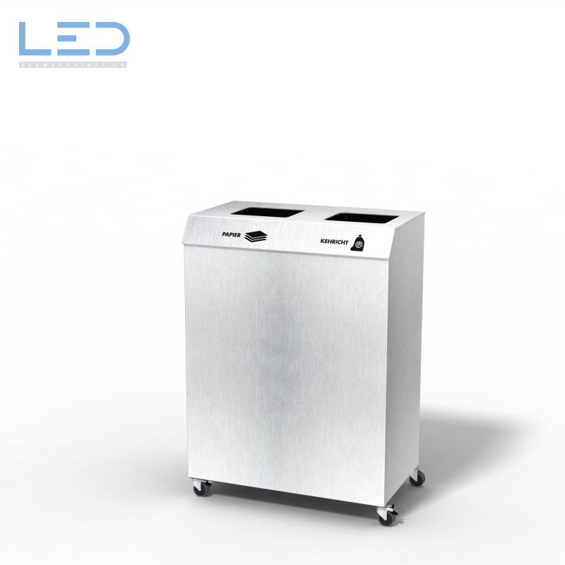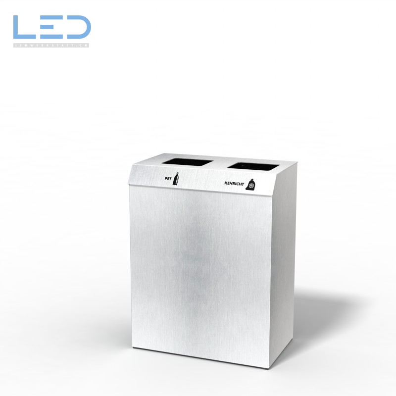Der C2-Bin Inox ist mit einem 3 mm abgewinkeltem Edelstahl-Deckel umgesetzt, dadurch wirkt er optisch kelin und intergriert sich gut im Raum.