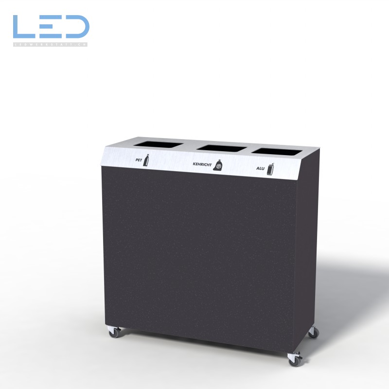 Der C3-Bin ist mit einem 3 mm abgewinkeltem Edelstahl-Deckel umgesetzt, dadurch wirkt er optisch kelin und intergriert sich gut im Raum.