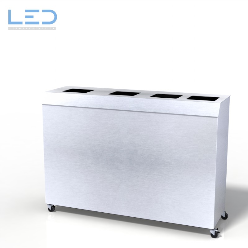 Die C4-Bin Inox Recyclingstation, die einfache Einsteiger-Serie für die Abfalltrennung von KMU Betrieben mit hohen Ansprüchen. Für eine einfache Bewirtschaftung werden die Wertstoffe in konischen Innenbehältern gesammelt, damit die Abfalltüten einfach zu entnehmen sind.