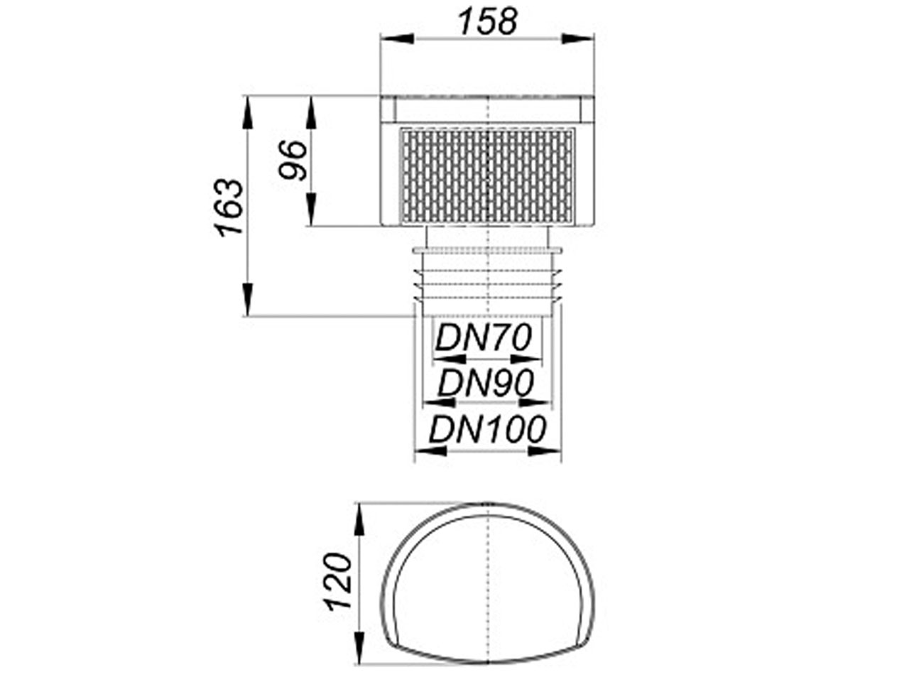- Ausführung: Abnehmbares Insektenschutzgitter, integrierte Wärmedämmung (frostsicher bis -20°), Lippendichtung zum Anschluss an Abwasserleitungen DN 70, DN 90 und DN 100