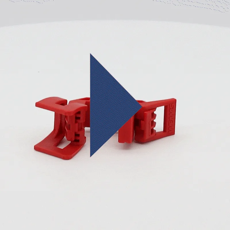 Nehmen Sie zunächst 2 Duplexklemmen und öffnen Sie jeweils den größeren der beiden Hebel. In die so freigelegte Aussparung legen Sie das Verkehrszeichen ein und schließen die Hebel wieder.