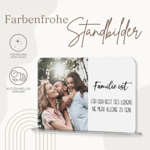 Unter den Acrylglasbildern kannst du deine persönliche Botschaft verewigen – sei es ein Text, der dir wichtig ist, oder eines der zahlreichen Motive, die zur Auswahl stehen. Gestalte deinen Fotoständer genau so, wie es dir am besten gefällt, und mache daraus ein einzigartiges Andenken oder ein perfektes Geschenk für besondere Anlässe.