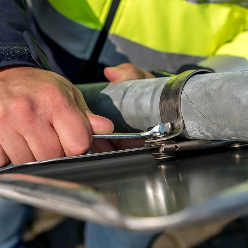 Mit der Edelstahl-Klemmschelle EKS befestigen Sie randgebördelte und profilverstärkte Verkehrszeichen – Bauart Randform und Alform. Die Herstellung der Edelstahlklemmschelle erfolgt nach den Vorgaben der IVZ-Norm.