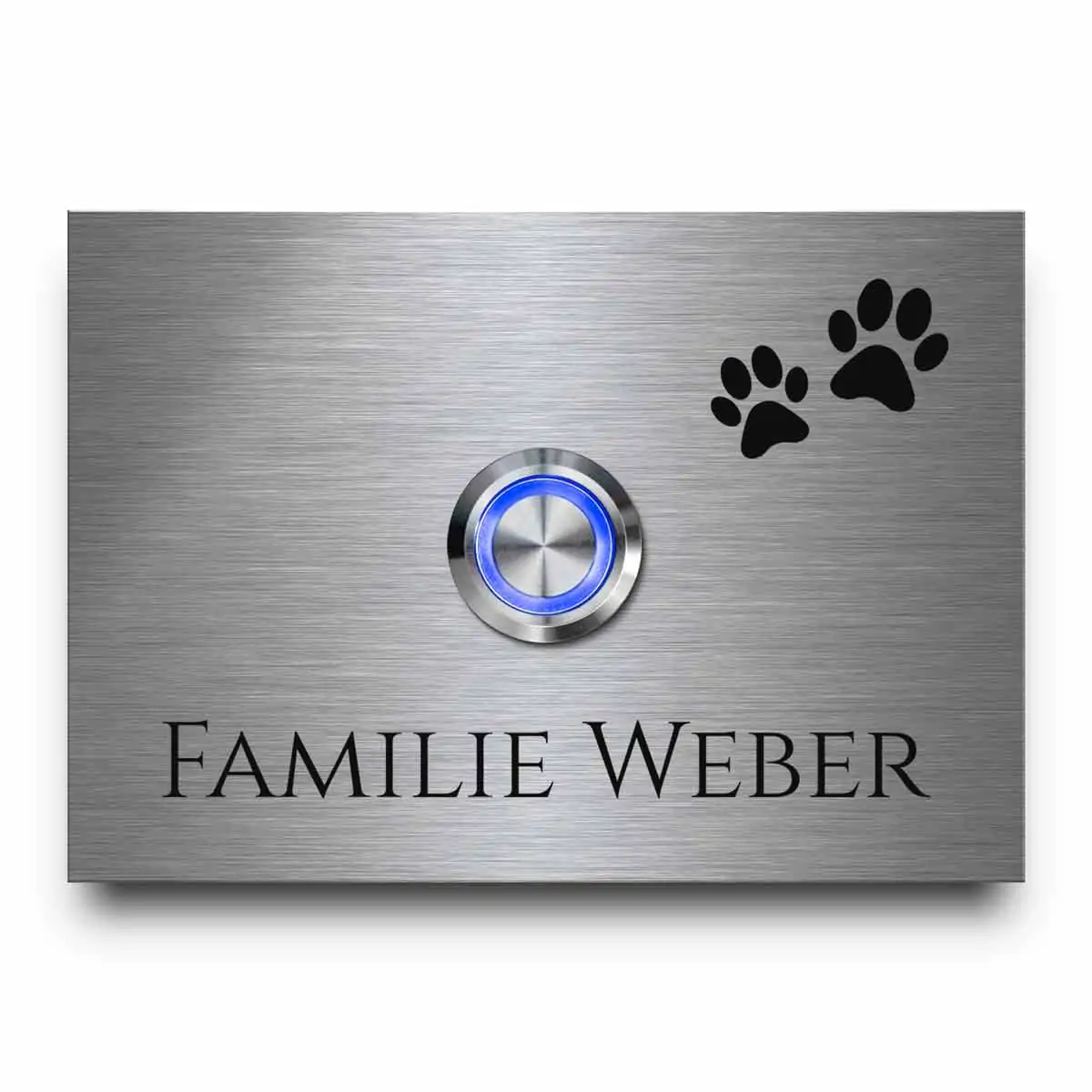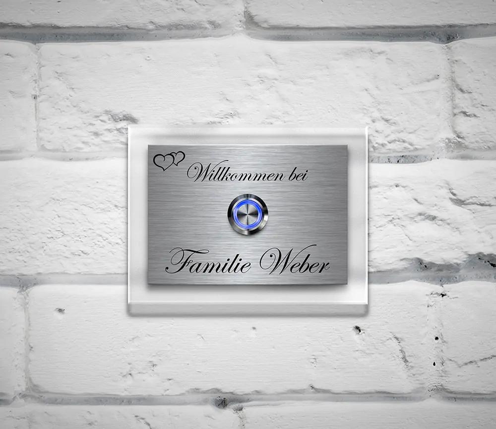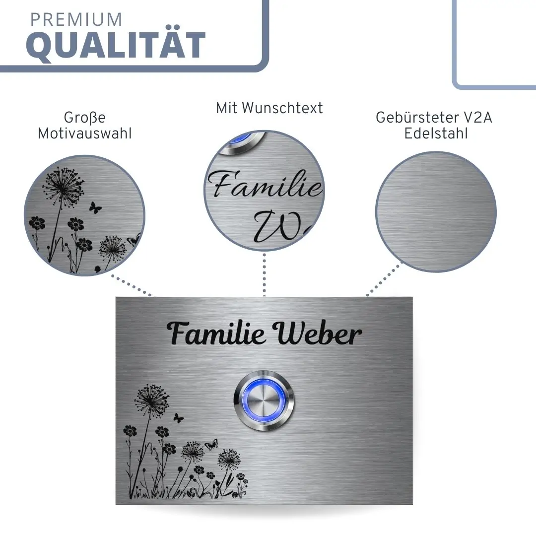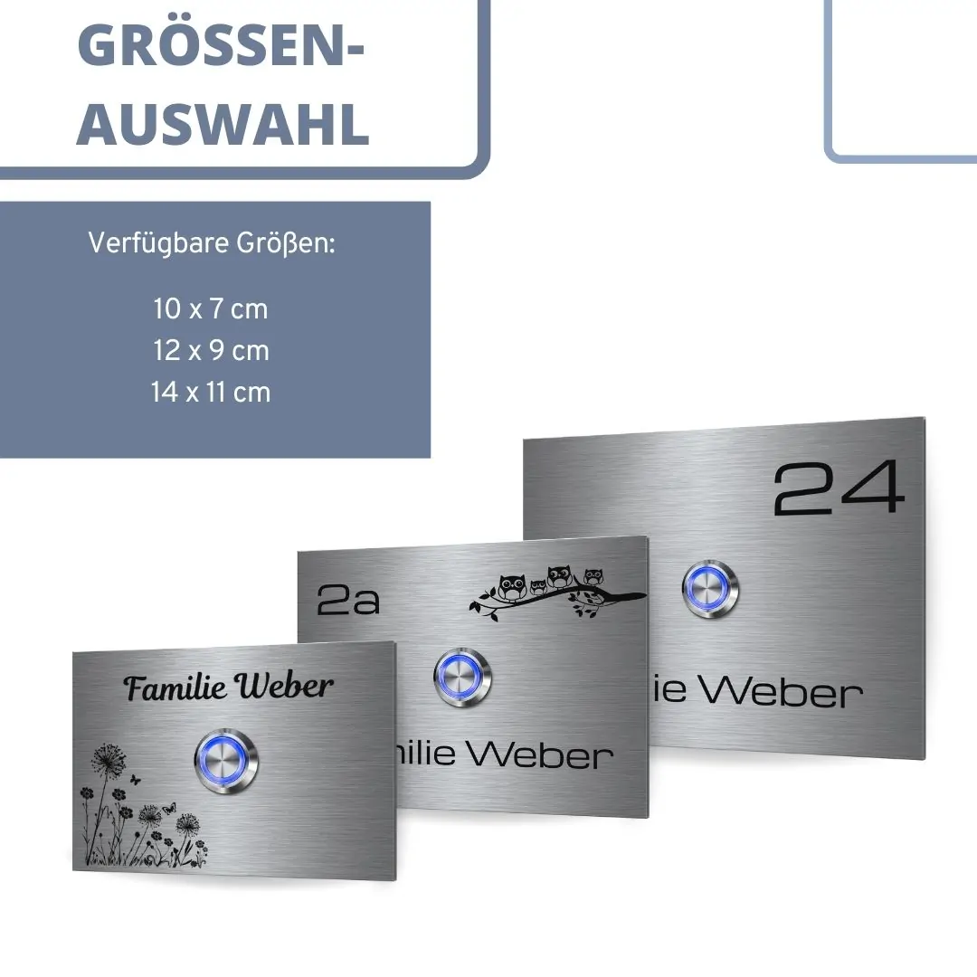 Türklingel aus V2A Edelstahl mit Gravur und LED Taster / Modell Weber ab 10×7 cm