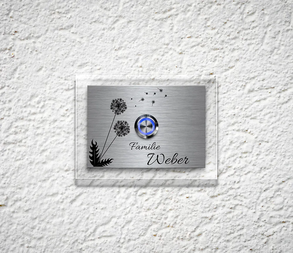 Um Deine Türklingel noch ein wenig hervorzuheben, bieten wir Dir optional schöne Dekorplatten aus 5 mm Acrylglas in Klar- oder Milchglasoptik an. Die Acrylglaslatten sind leicht zu montieren und optisch bei Tageslicht und Sonnenstrahlen ein absoluter Blickfang. Zudem findest Du in unserem Sortiment auch beleuchtete Klingelplatten, welche Deine Klingel auch im Dunkeln erstrahlen lassen. Schöner kannst Du Deine neue Türklingel nicht präsentieren.