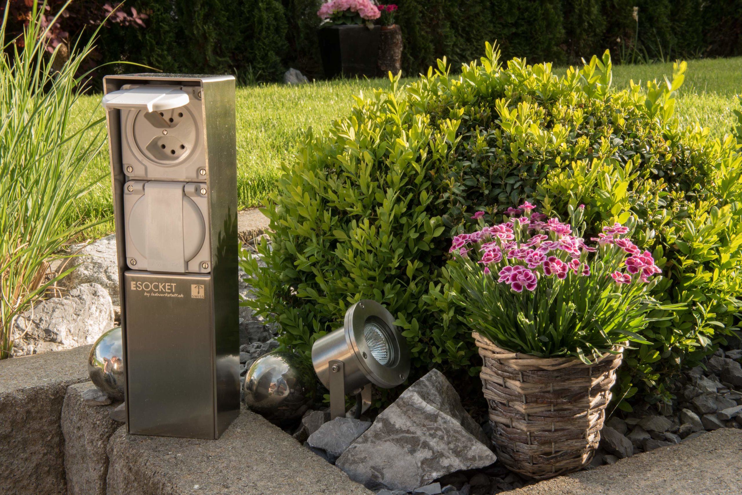 Besonders geeignet ist die Anschlusssäule ESOCKET 350-F für Holzterrassen und Beton Gartenplatten. Die Zuleitung kann unter dem Holz oder unter den Gartenplatten zugeführt und mittels der Montageplatte verschraubt werden.