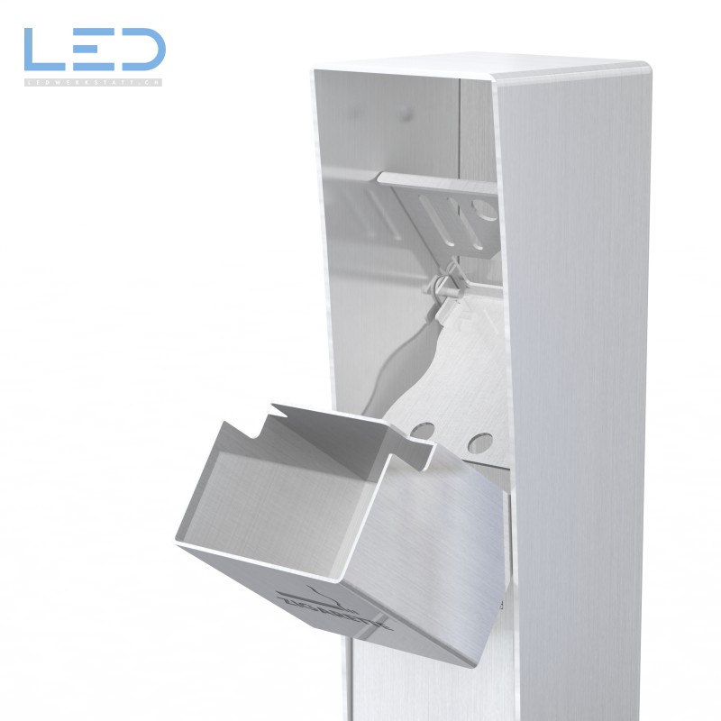 Standascher ESOCKET 350-S in geschliffenem Edelstahl (Aschenbecher INOX) wird in der Schweiz produziert. Er wurde als Ergänzung zu unseren Steckdosensockel und -säulen für Ihren Aussenbereich entwickelt. Ein echter Blickfang auf jeder Terrasse oder öffentlichem Eingang. In Kombination mit einem Abfallbehälter für Zigarettenschachteln ist der Stand-Ascher ESOCKET 350-S auch funktionell.