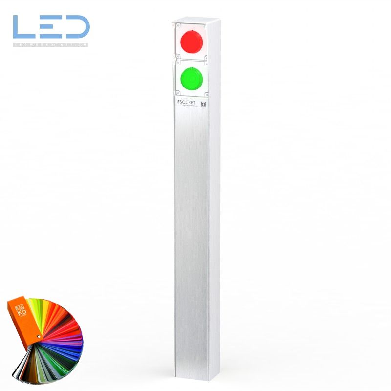 ESOCKET 900-A (Ampelsäule) in geschliffenem Edelstahl (INOX) oder Sonderfarbe nach RAL, damit das Produkt zu Ihrer Ausseneinrichtung passt. Sie wurde als Ergänzung zu unseren Steckdosensockeln und Säulen für Ihren Aussenbereich entwickelt. Ein echter Blickfang in der Tiefgarageneinfahrt.