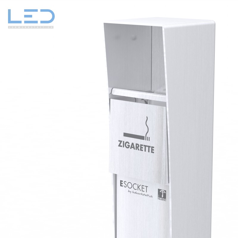 Standascher ESOCKET 900-S in geschliffenem Edelstahl (INOX) ist auf Wunsch auch in RAL Farbe erhältlich, so dass er zu Ihrem Aussenraum passt. Er wurde als Ergänzung zu unseren Steckdosensockeln und -säulen entwickelt. Ein echter Blickfang auf jeder Terrasse oder öffentlichem Eingang.