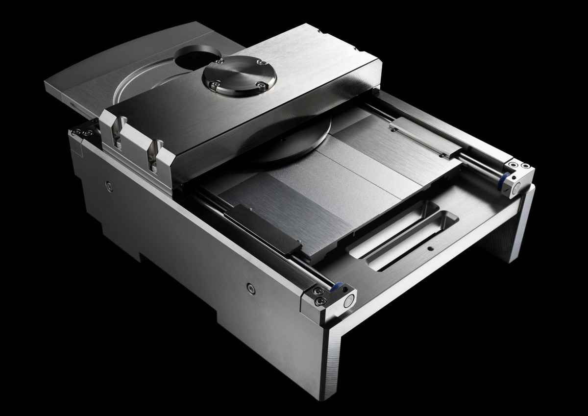 Besonderes Augenmerk wurde auch auf die Chassiskonstruktion jeder Einheit gelegt, mit einem stabilen, robusten Gehäuse aus dicken Aluminiumplatten, um eine gründliche Vibrationskontrolle zu gewährleisten. Das untere Chassis, an dem jede Schaltungskomponente befestigt ist, hat eine mehrschichtige Struktur aus mehreren Stahlplatten. Der Leistungstransformator und andere Komponenten sind auf separaten Schichten befestigt und in einer dreidimensionalen Anordnung angeordnet, um gegenseitige Störungen zwischen den einzelnen Komponenten zu verhindern. Der ursprüngliche Pinpoint-Fuß* von Esoteric, der einen Dorn und eine Untertasse integriert, wurde durch einen neuen Fuß ersetzt, der nicht mit dem unteren Chassis verschraubt ist, sondern im eingebauten Zustand durch das Gewicht des Chassis an Ort und Stelle gehalten wird. Durch die Vermeidung der Spannungskonzentration, die durch das Einschrauben des Pinpoint-Fußkörpers in die große Oberfläche des unteren Chassis entsteht, entsteht ein offenerer Klang.