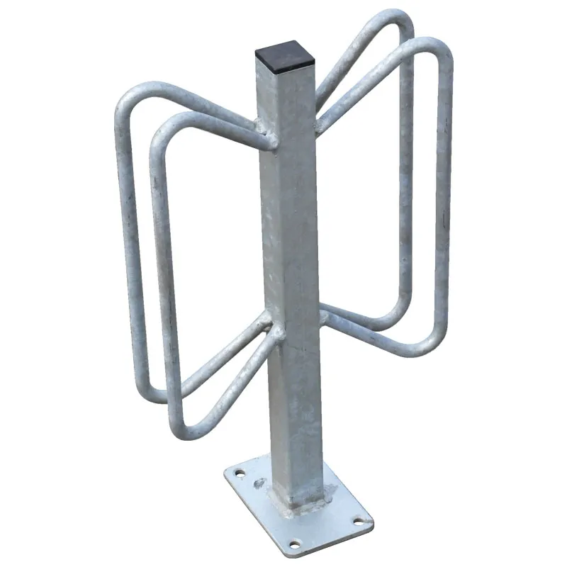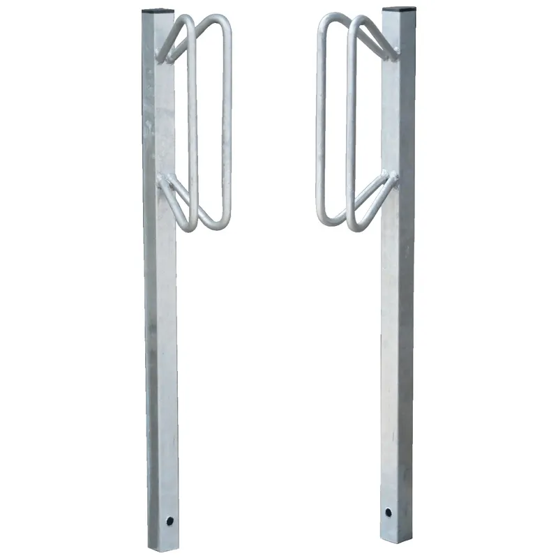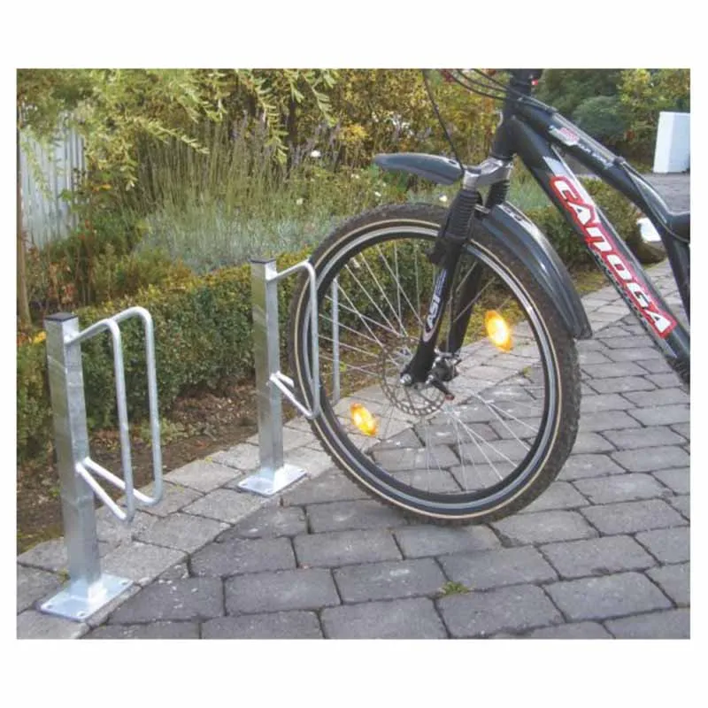 Der Fahrradständer aus feuerverzinktem Stahl ist wetterfest und nimmt Fahrradreifen bis zu einer Breite von 60 mm auf. Es gibt ihn als einseitige Ausführung für ein Fahrrad oder als doppelseitige Ausführung für zwei einander gegenüberstehende Fahrräder.