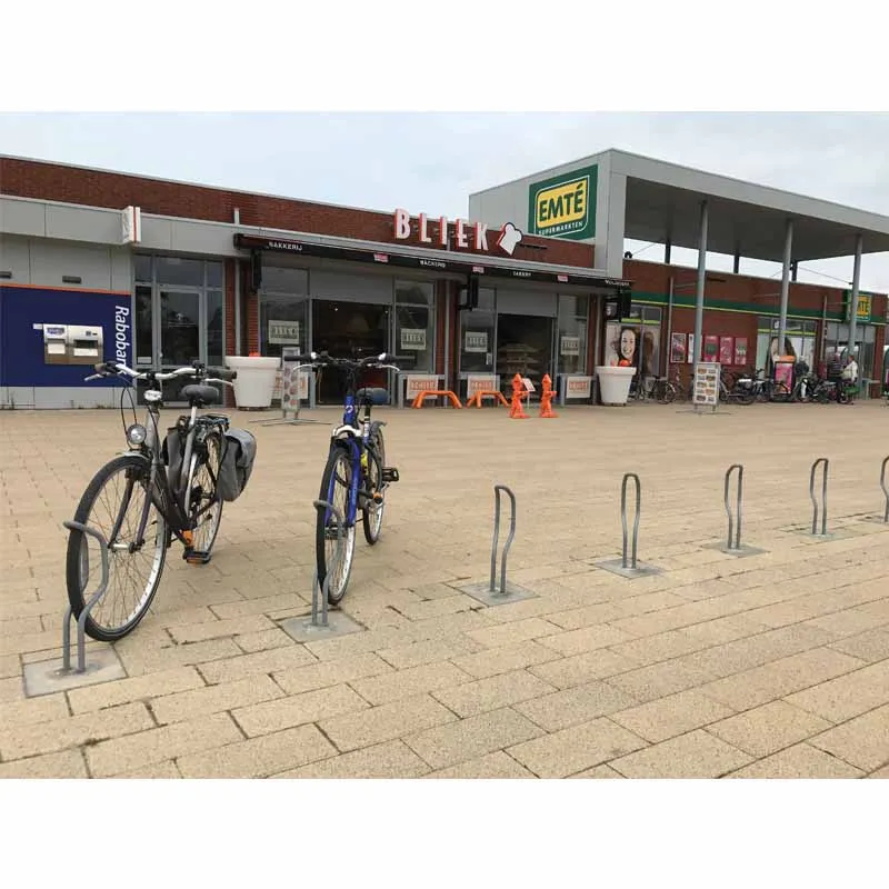 Der Fahrradparker zur Bodenmontage besteht aus feuerverzinktem Stahl, ist witterungsbeständig, robust und hat eine Überflurhöhe von 530 mm. Sie können mehrere Einzelparker nach Ihren individuellen Vorgaben flexibel anordnen – auch unterschiedliche Abstände und Formen wie zum Beispiel Halbkreise sind möglich.
