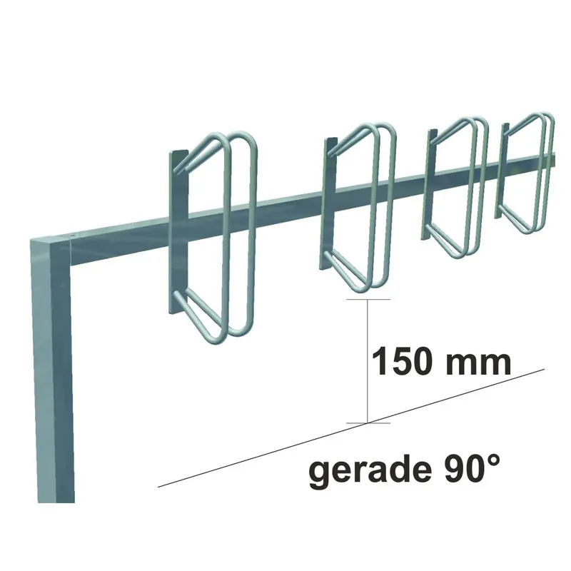 Der Mehrfach Fahrradständer besteht aus einem 3000 mm breiten Vierkant-Trägerrohr mit 6 angeschweißten Haltebügeln, gefertigt aus feuerverzinktem Stahl. Durch die Drehung des Trägerrohrs können Sie die Ausrichtung der schrägen Haltebügel nach links oder rechts wählen. Die freistehende Ausführung hat zwei anschraubbare Vierkant-Standrohre, entweder zum Einbetonieren oder mit Fußplatte zum Aufdübeln. Der Schake Reihenparker zeichnet sich durch seine hohe Witterungsbeständigkeit und Stabilität aus.