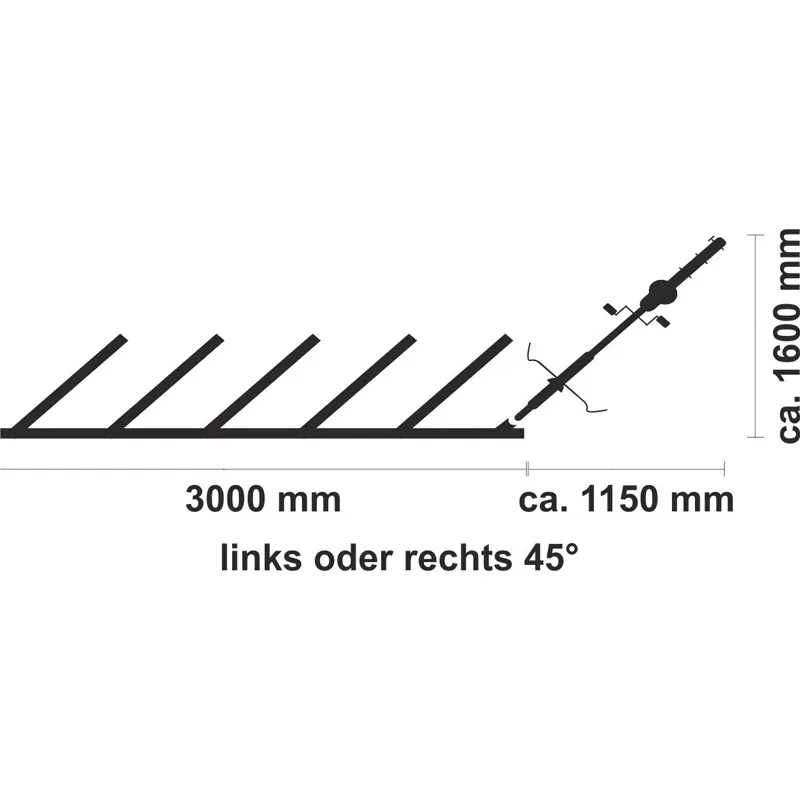 Gesamtbreite mit Trägerpfosten: ca. 3100 mm
