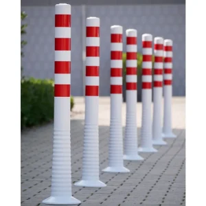 Unsere einteiligen Flexipfosten mit weißen Reflexstreifen sind elastisch und wiederstandsfähig entsprechend DIN EN 13422.