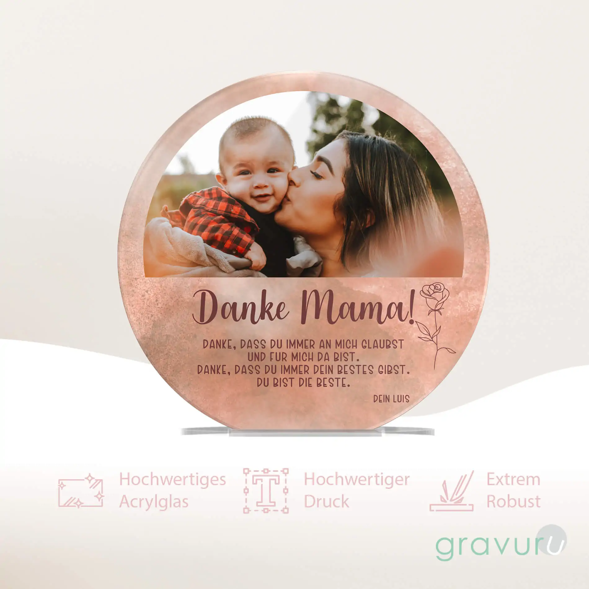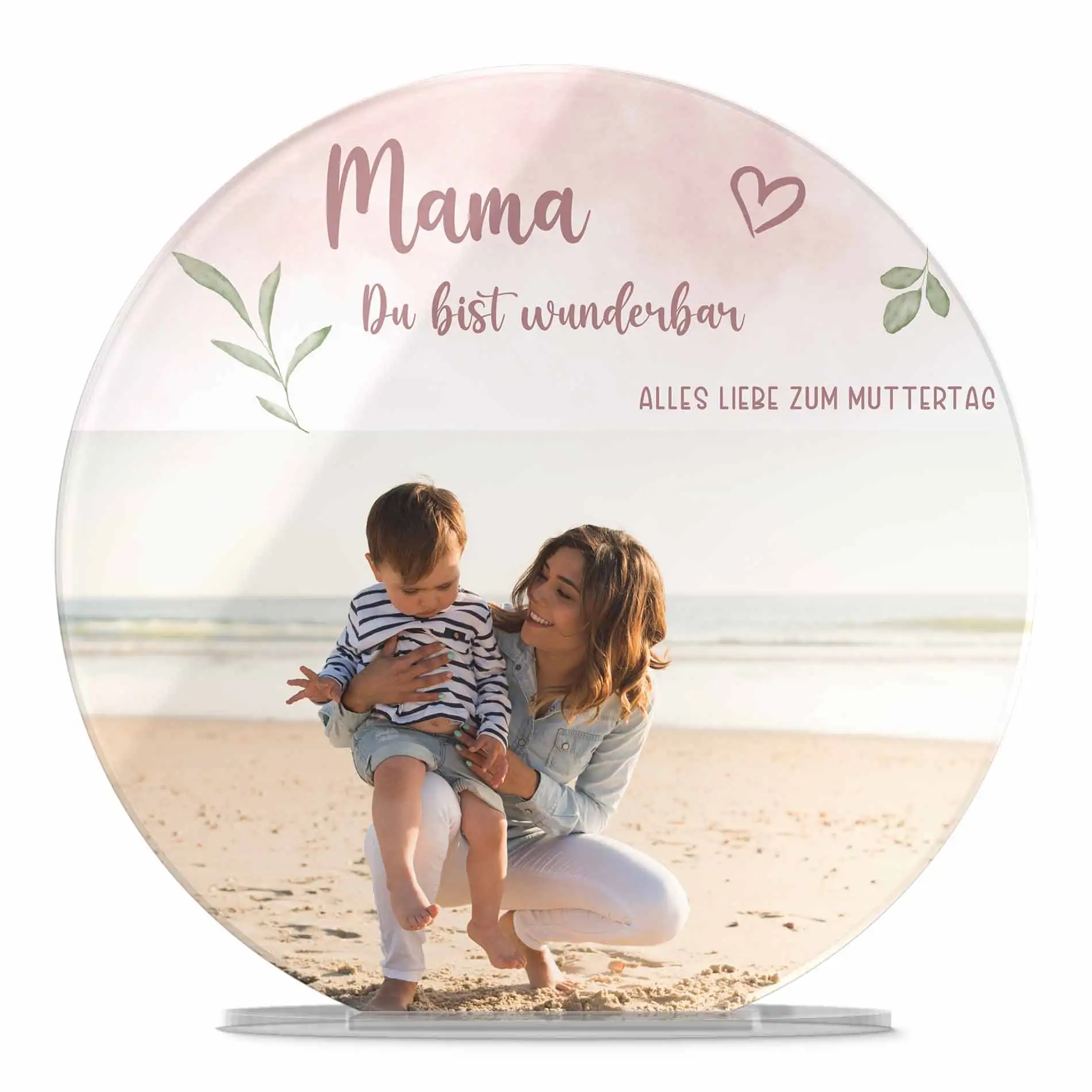 Material: Hochglanz Acrylglas mit UV Druck – Größe: 16 x 16 cm oder 25 x 25 cm – Stärke: 5mm – inklusive Stand Fuß aus klarem Acrylglas (Einstecksystem)