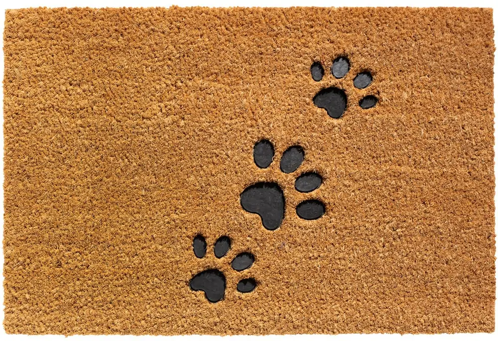 - Rechteckiger Fußabstreifer Kokos mit Pfotenabdrücken in tiefer Gummi Prägung. Für Innen- und überdachte Außenbereiche