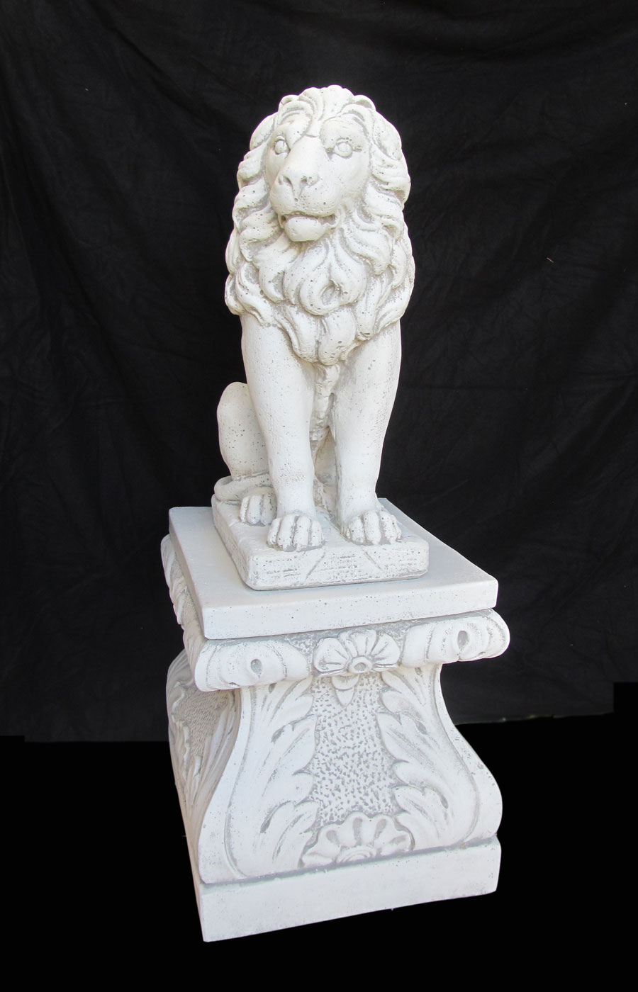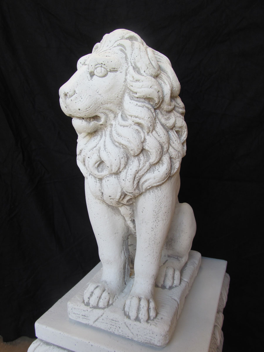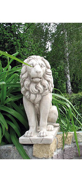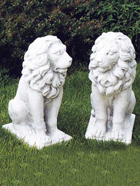 Dieses Paar besteht aus zwei Löwen in aufgerichtet sitzender Haltung. Sie eignen sich ideal als Wächter eines Tores oder Einganges.