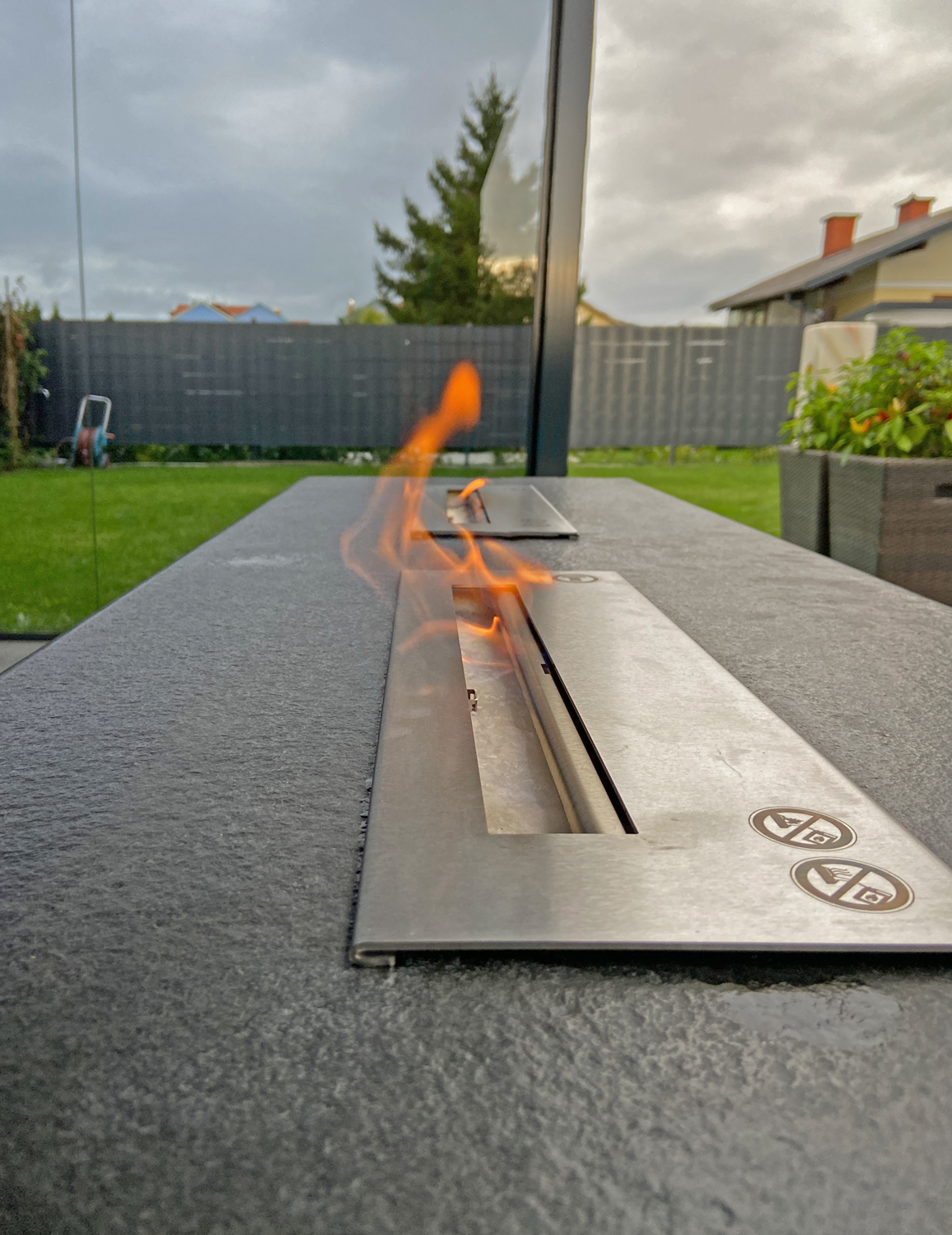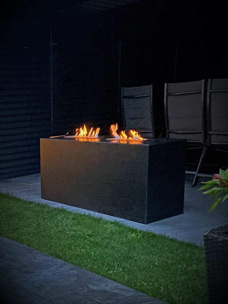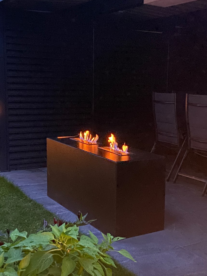 Das Bioethanol befindet sich in einem sicheren Edelstahlbrenner. Die Flamme ist einfach und schnell mit einem Schieber zu regulieren und zu löschen.
