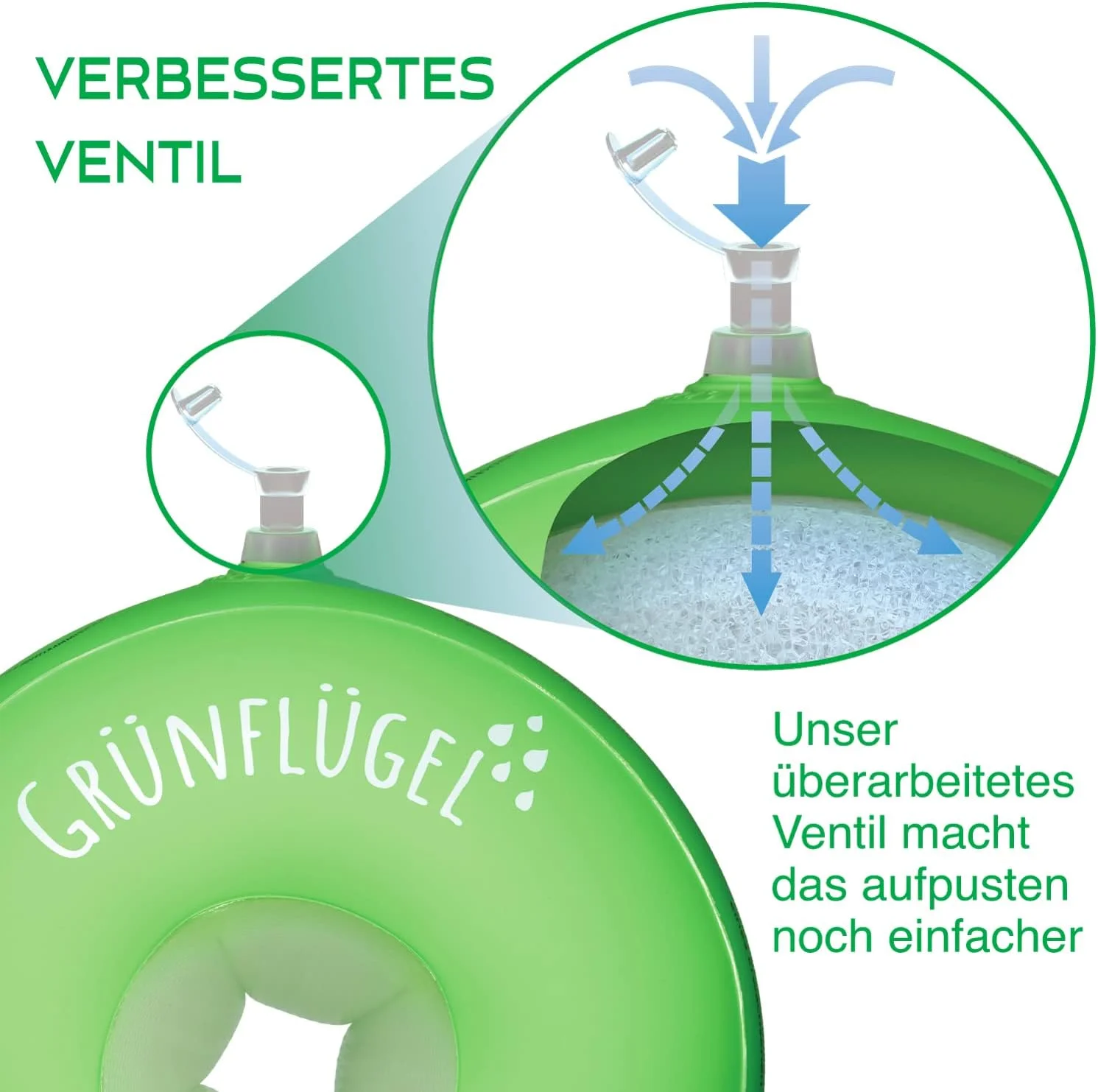 Wir begleiten dich bei deinen ersten Schwimmversuchen im Schwimmkurs, am See um die Ecke oder am Meer in deinem Urlaubsparadies. Während dich deine Grünflügel sicher über Wasser halten kannst du dich ganz beruhigt auf das Schwimmenlernen konzentrieren. Der Schaumkern im Inneren sorgt für doppelten Schutz und optimalen Auftrieb in jeder Wasserlage.