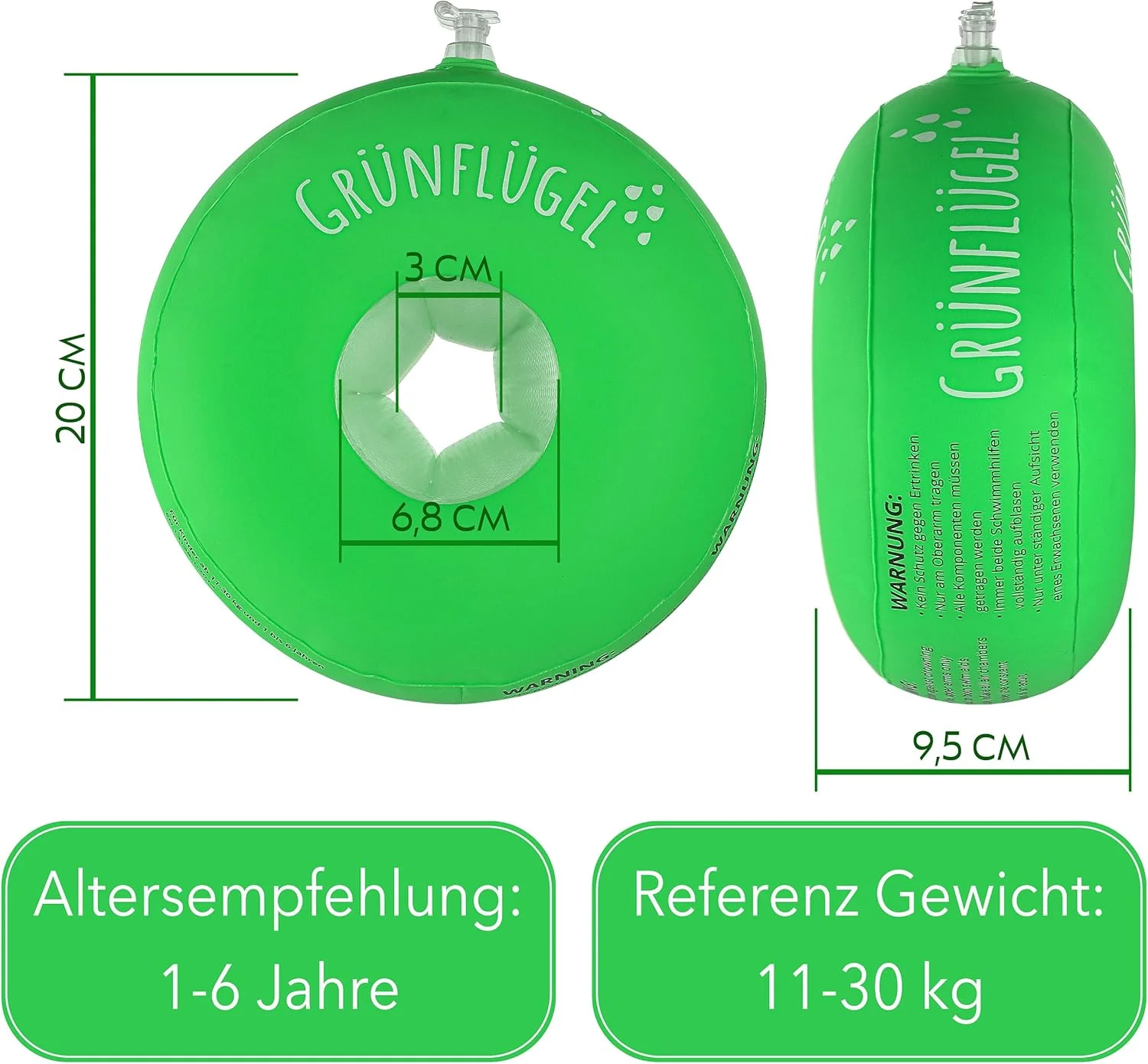 [vc_row][vc_column][vc_custom_heading text=“Grünflügel Schwimmflügel für Kinder 1–6 Jahre (11–30 kg) – BIO-TPU, hautfreundlich & ohne Weichmacher
