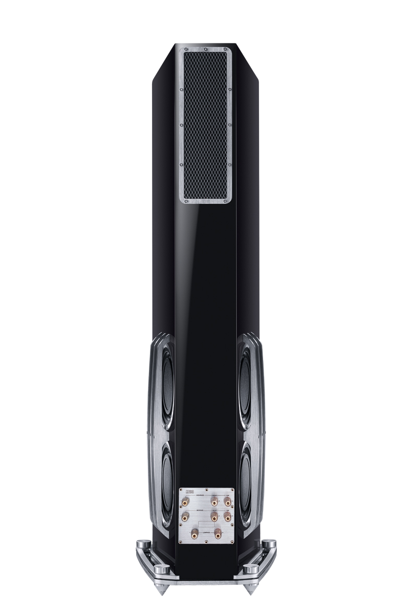 All das ist verpackt in ein massives Gehäuse mit akustisch perfektem Querschnitt und einer Verarbeitung die ihresgleichen sucht. Kühles Schwarz, selbstverständlich in edlem Klavierlack, kontrastiert mit Elementen aus massivem Aluminium, die nicht nur optisch, sondern auch konstruktiv Maßstäbe setzen.