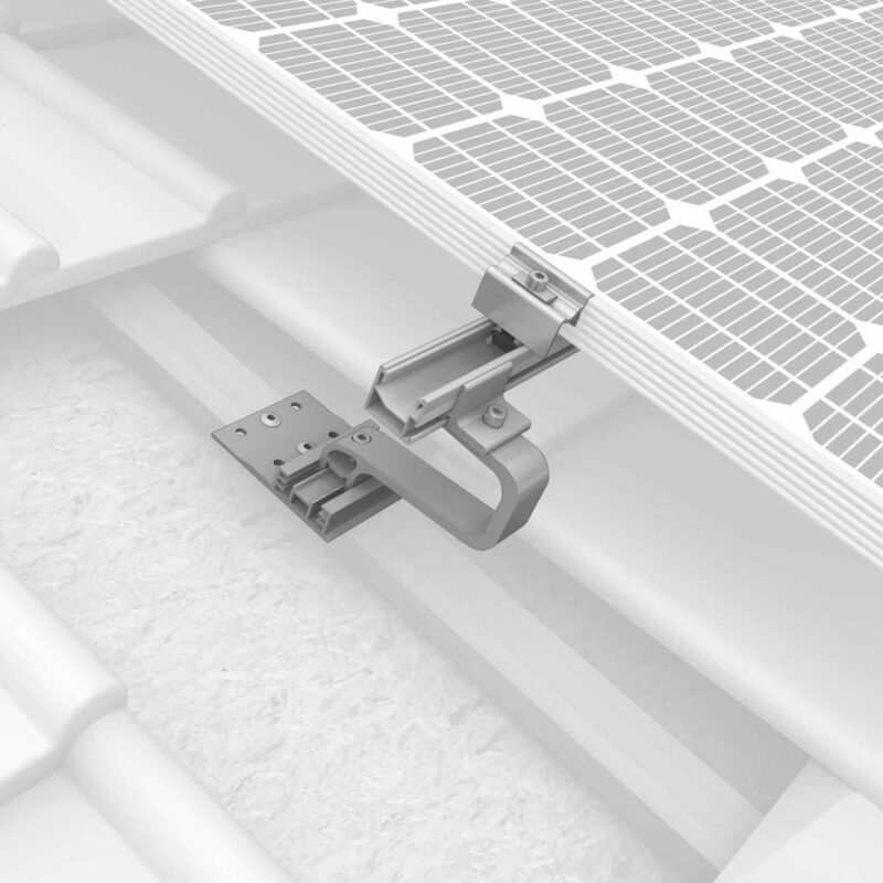 Dachhaken mit 3-facher Höheneinstellung in der Grundplatte (40,47,54 mm). Für schmale Sparren ab 36 mm. Mit vormontiertem Climber 36/50 und Zylinderkopfschraube.