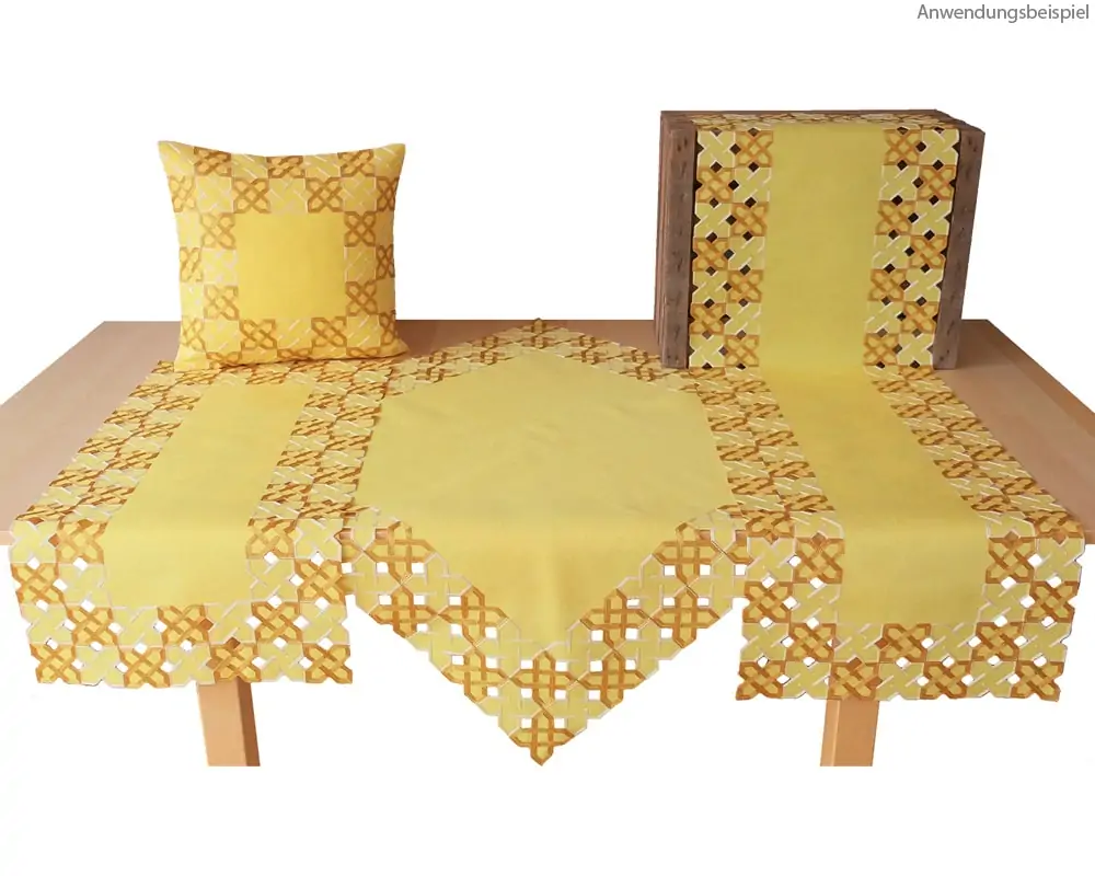 matches21 Kissenbezug Kissenhülle Heimtextilien Kurbelstickerei Muster grafisch Stick braun 1 Stk gelb 40×40 cm Polyester
