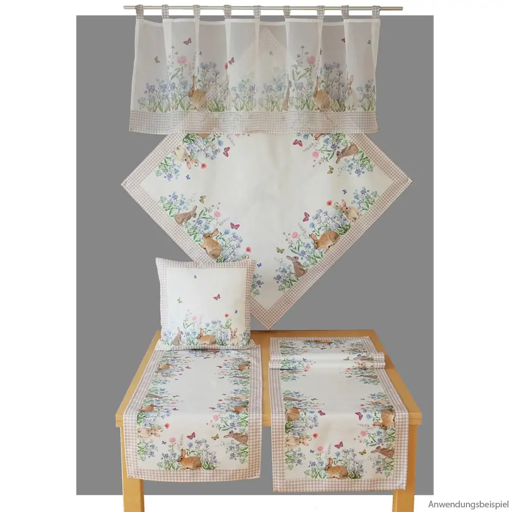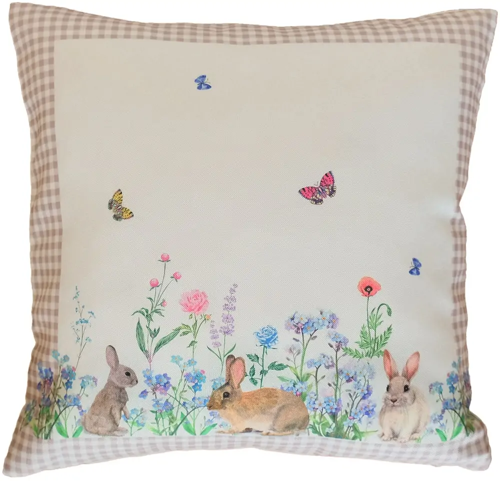 matches21 Kissenbezug / Kissenhülle buntes Ostermotiv Osterhasen & Wiese mit Karo Bordüre 40×40 cm Polyester