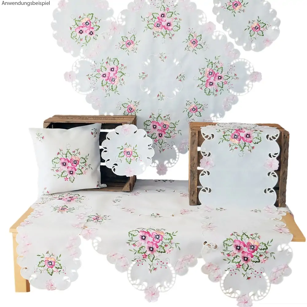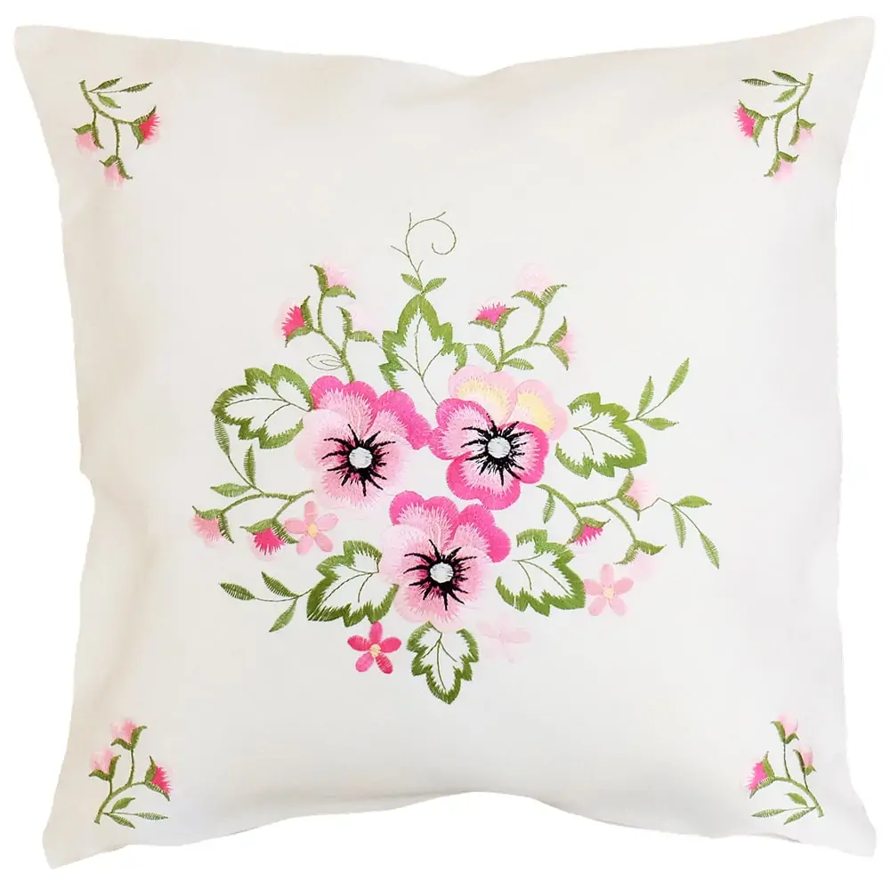 matches21 Kissenbezug Kissenhülle Heimtextilien Stiefmütterchen Blumen Frühling weiß Stickerei rosa 1 Stk 40×40 cm Polyester