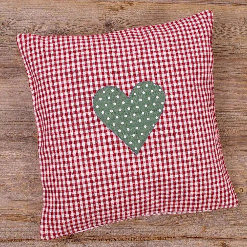matches21 Kissenhülle Kissenbezug Heimtextilien Landhaus Stil VRONI Stoffmix Karo rot & Herz-Applikation 30×30 cm