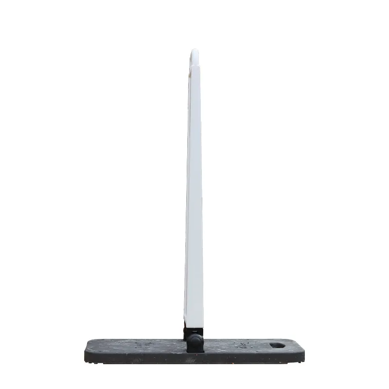 Das Bakenblatt hat eine Doppelwand-Konstruktion für Formstabilität sowie einen breiten, erhabenen Folienschutzrand. Durch das Anti-Rutsch-System und verstärkende Metallprofile am Fuß ist die Klappbake mit Pfeilfolie besonders positionsstabil.