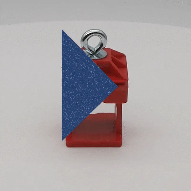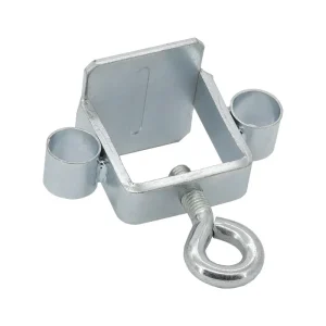 Alternativ bieten wir Ihnen die Klemmschelle K2 mit Ösen an. Die beiden seitlichen Ösen eignen sich zur Aufnahme von Absperrschranken mit Haken.