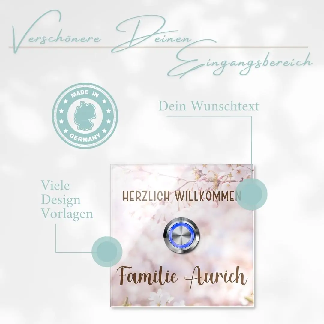 Klingel mit Wunsch-Druck und LED-Klingeltaster | ab 8×8 cm